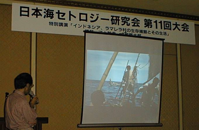 | インドネシアのバリ島より連なる小スンダ列島,その東端に位置するレンバタ島は沖縄本島よりやや大きいほどの島である.南北に火山をいだいた島には平地は少なく,住民の伝統的生業は当地域の島々同様,焼畑耕作によるトウモロコシ・陸稲栽培である. その島の南海岸にあるラマレラ村には世界で唯一,今なおマッコウクジラを獲ることに命を懸けている「海の狩人」がいる.ここではかっての日本の古式捕鯨を彷彿とさせる勇壮な狩猟を見ることができる.ラマレラの民はこの地の先住民ではない.伝承では,エイ・サメ・ウミガメの銛漁をしていた彼らの祖先が,16世紀ごろにインドネシア東部諸島からこの地に渡ってきたといわれている. ラマレラの集落は,海岸まで山が迫った狭い浦にある.主食の食糧を自給できないこの厳しい立地条件で,彼らは本来どおり海の民として生きることを選択した.現在では約2,000人がマッコウクジラ捕鯨を主体に,マンタなどの大型魚を,手投げ銛一本で捕獲して暮らしている.獲物を追う船は全長10mのプレダンとよばれる木造帆船である.この小船に10〜13人ほどの漁師が乗りこみ,巨大なマッコウクジラに挑んでいくのである. 捕獲されたクジラの分配法は厳しく定められ,捕獲に関与したすべての者に何らかの分配がある.捨てる部位のないクジラは,余すところなく利用され,その巨体は村中にくまなくいきわたっていく.なぜならば,ラマレラではクジラは自家消費用の食糧ではなく,物々交換で経済が成り立っているここではまさに貨幣に代わるものだからである. 女たちは山に行商にいき,主食の穀物を手に入れる.400年もの間,男と女が協力してクジラとともに生きてきた.山の民もクジラを待ちわびている.海からの恵みは山をも潤し,山の幸はラマレラに分け与えられる.クジラの流通を通して地域全体の強固な関係が結ばれてきた.物々交換という信用が第一の取引で,お互いを信頼し合いクジラとトウモロコシを交換し続けてきたのである. ラマレラの捕鯨は生存の必須条件であるばかりか,周辺の地域社会と密接に繋がり,捕鯨文化ともいえるものを形成しているのである.さらに,クジラがラマレラのコミュニティーの紐帯となり綿密な社会が営まれ継承されてきたことが,過去5年間の調査を通して理解できた.ラマレラの民は移住民であり,定住にあたって魚を届けることを条件に先住農耕民から土地の利用権を得た.この得難い土地を獲得したことがラマレラ捕鯨の始まりだとみなされる.地主との共存関係は現在に至るまで継続しており,捕獲されたクジラの頭部を,感謝を込めて献上している. 役割分担を遵守して農業には手を出さず,農作物の自給を拒絶してまで,専ら海で生きることを使命とした.山の民もまた,漁業には目を向けずにラマレラの民を待ち続けている.山の民とは交換を通じて共存,共生の信頼関係を築いてきた.社会・経済情勢が変化してもクジラとトウモロコシの交換率に変動がないことがそれを物語っている.おそらくはるか昔からそうであったろう.そして,ラマレラの民がクジラを獲り続ける限りこのコミュニティーは継続し,崩壊することはないであろう. 今後さらなる調査をし,山と海の関わりを細部にわたり解明したいと考えている. |