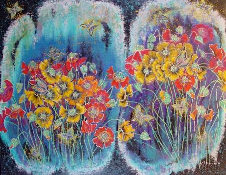 第19回一創会展 春讃歌B(「赤・黄・橙の芥子の花と蝶」)